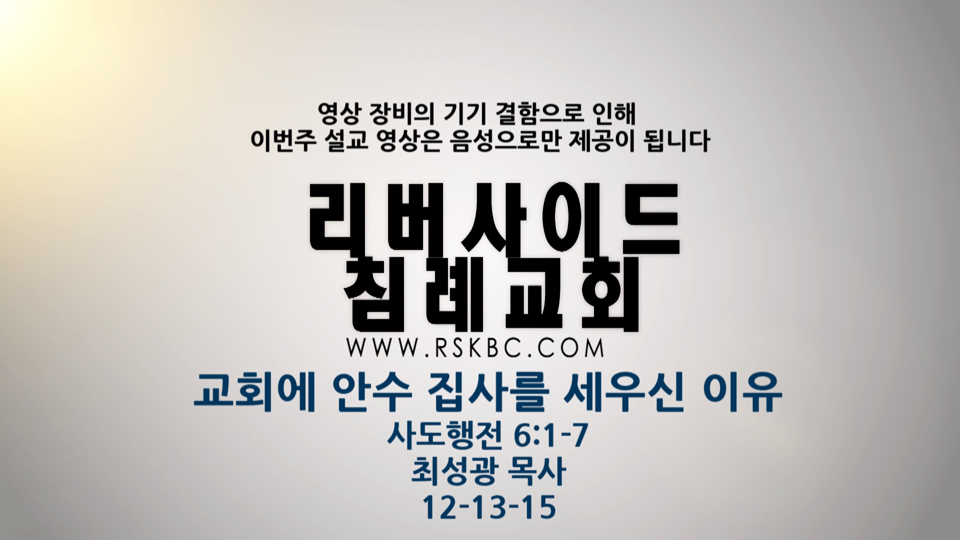 교회에 안수 집사를 세우신 이유 | 사도행전 6:1-7 | 최성광 목사 | 2015-12-17 |