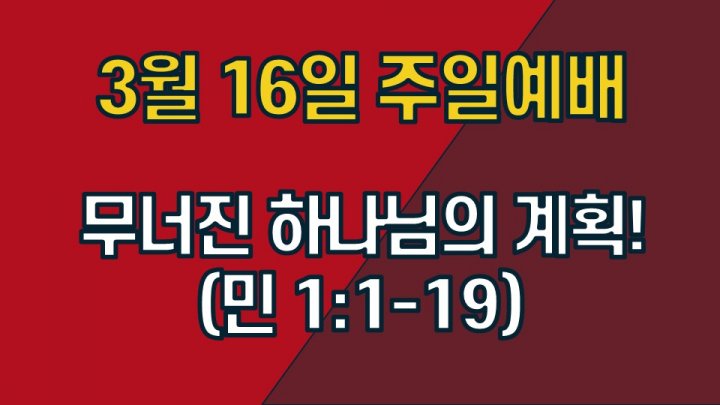무너진 하나님의 계획! | 민수기 1:1-19 | 최성광 목사 | 2025-03-16 |
