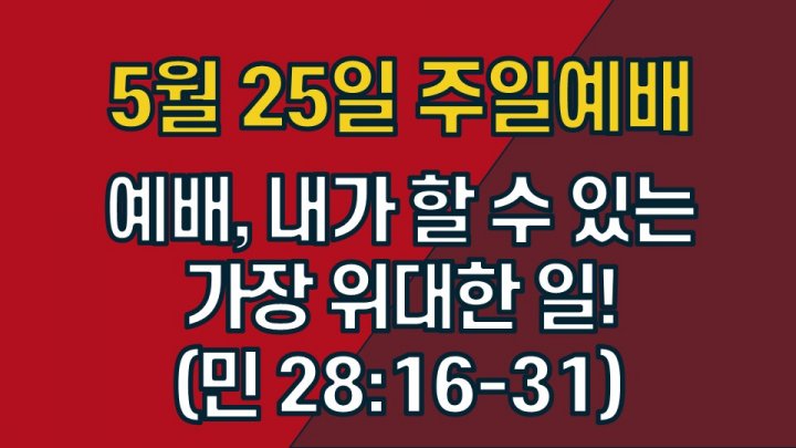 예배, 내가 할 수 있는 가장 위대한 일! | 민수기 28:16-31 | 최성광 목사 | 2025-05-25 |