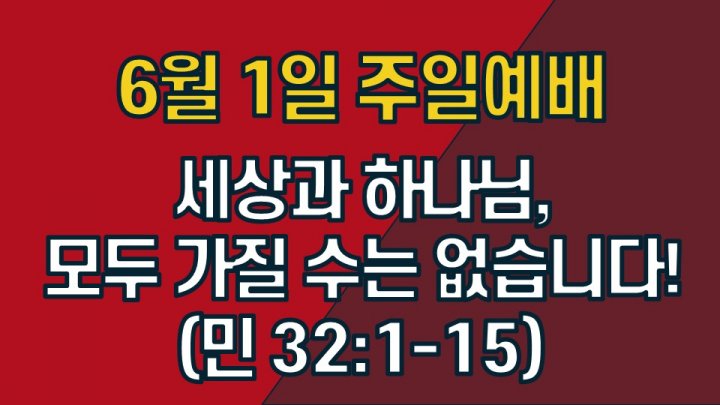 세상과 하나님, 모두 가질 수는 없습니다! | 민수기 32:1-15 | 최성광 목사 | 2025-06-01 |
