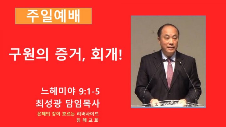 구원의 증거, 회개! | 느헤미야 9:1-5 | 최성광 목사 | 2024-09-25 |