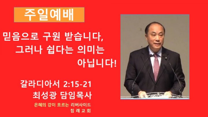 믿음으로 구원 받습니다. 그러나 쉽다는 의미는 아닙니다! | 갈라디아서 2:15-21 | 최성광 목사 | 2024-10-20 |