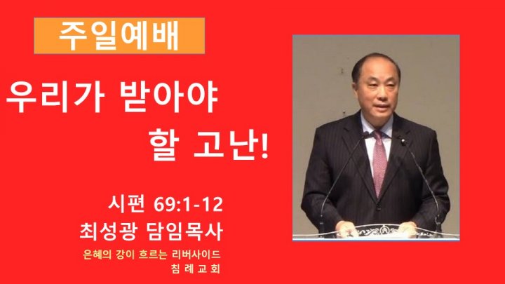 우리가 받아야 할 고난! | 시편 69:1-12 | 최성광 목사 | 2024-11-10 |