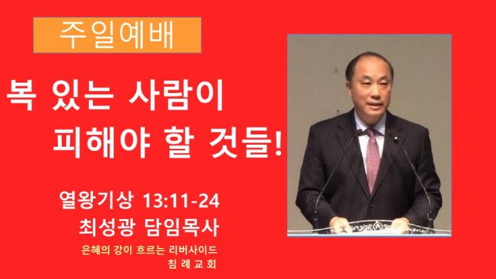 복 있는 사람이 피해야 할 것들! | 열왕기상 13:11-24 | 최성광 담임목사 | 2024-05-05 |