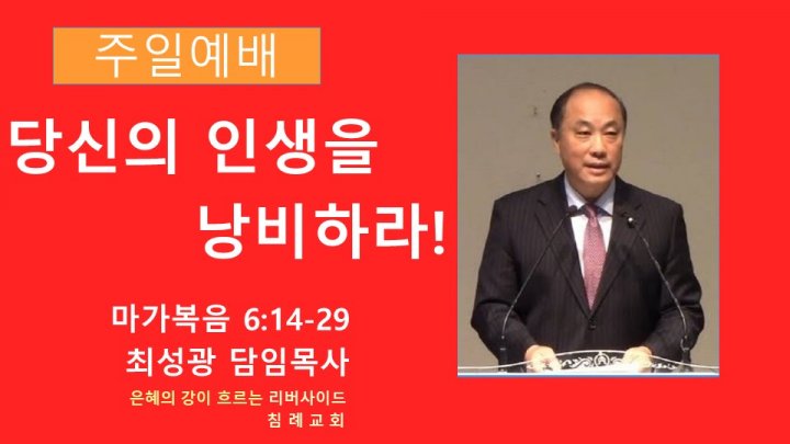당신의 인생을 낭비하라! | 마가복음 6:14-29 | 최성광 담임목사 | 2024-01-21 |