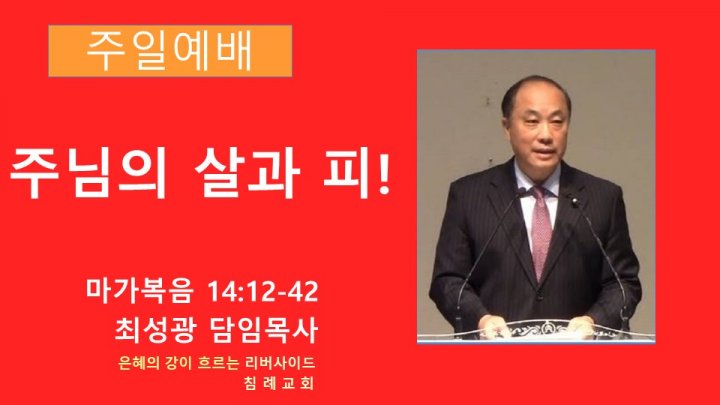 주님의 살과 피! | 마가복음 14:12-42 | 최성광 담임목사 | 2024-02-11 |