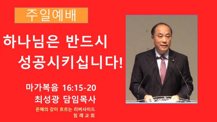 하나님은 반드시 성공시키십니다! | 마가복음 16:15-20 | 최성광 담임목사 | 2024-02-25 |