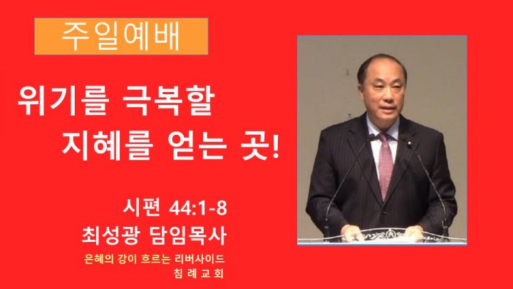 위기를 극복할 지혜를 얻는 곳! | 시편 44:1-8 | 최성광 담임목사 | 2024-03-03 |