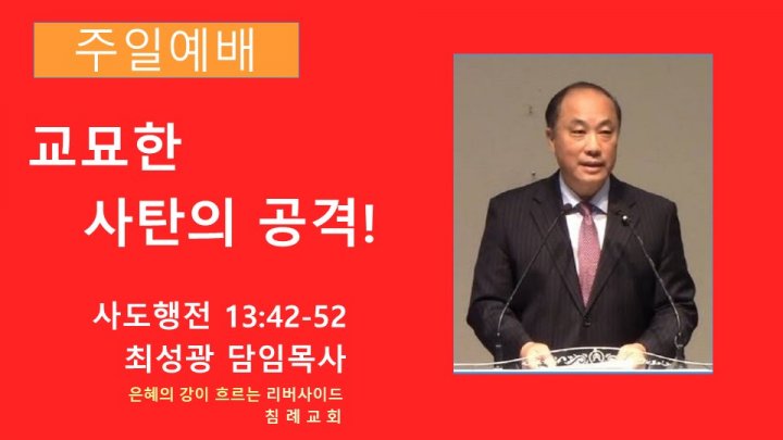 교묘한 사탄의 공격! | 사도행전 13:42-52 | 최성광 담임목사 | 2023-07-23 |