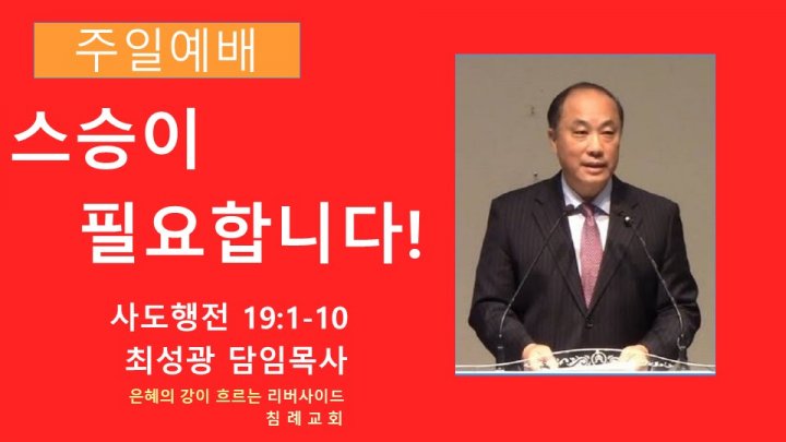 스승이 필요합니다! | 사도행전 19:1-10 | 최성광 담임목사 | 2023-08-06 |
