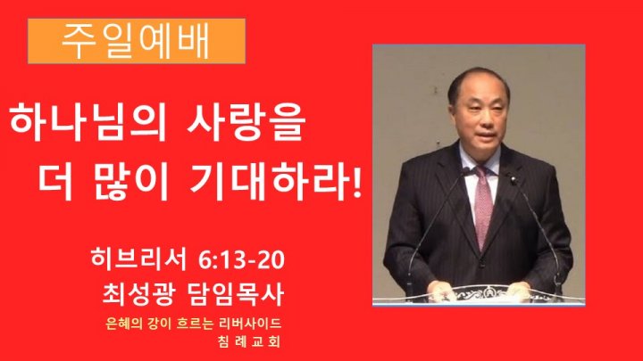 하나님의 사랑을 더 많이 기대하라! | 히브리서 6:13-20 | 최성광 담임목사 | 2023-09-10 |