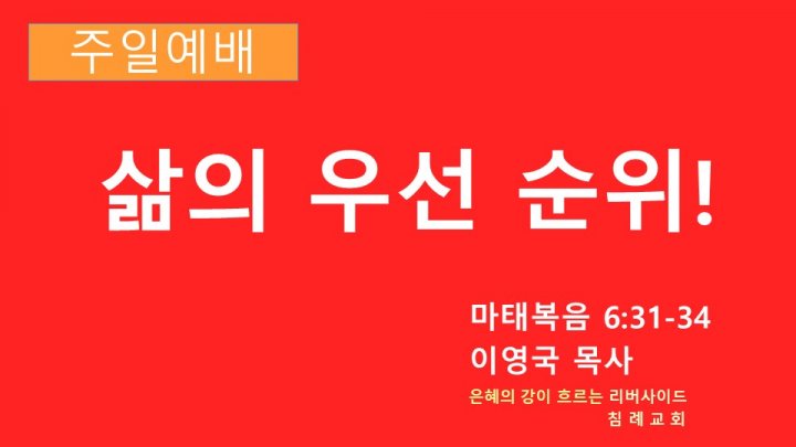 삶의 우선 순위! | 마태복음 6:31-34 | 이영국 목사 | 2023-10-22 |